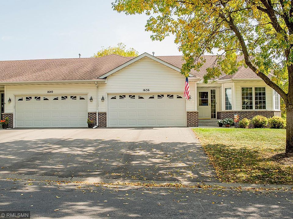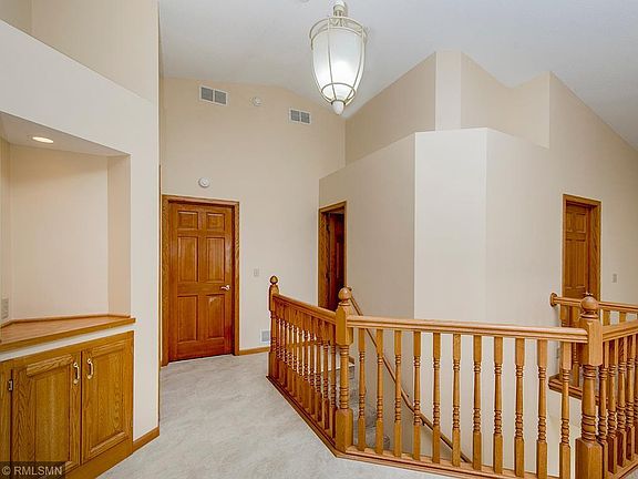 Stunning end unit walkout townhome. Wide open floor plan, vaulted tall ceilings, sunroom, big closets and a lot of storage. Upscale main floor master suite with master bath, another private bed and bath downstairs. Entertain friends in the large living room upstairs, the huge family room downstairs, or on the patio, balcony. Walk to beautiful Tamarack Park; easy access to 35E and HWY 36. Quick close possible.