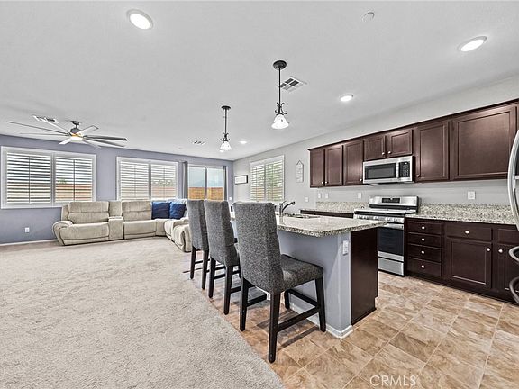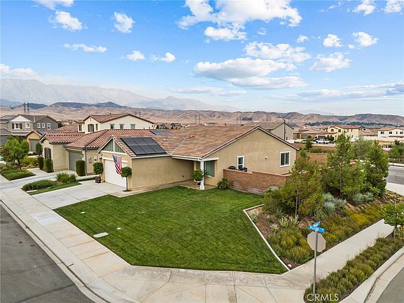Welcome to this Charming Banning Newer Construction Single Story Home with a Lot Premium, and Backyard Landscaping Already Installed zoned for the Beaumont School District!!! Discover the perfect blend of comfort, convenience and style in this newer 3 bedroom, 2 bath single story home nestled on a spacious corner lot in Banning. Pulling up to the property you will appreciate the widened driveway with stamped concrete costing around $25k , fresh for the new owner to enjoy! Walking inside the home, it boasts a modern open floor plan with high ceilings, as well as plantation shutters throughout which was about a $10k renovation completed by the current owner. The kitchen is a culinary delight with ample cabinet space and elegant granite countertops, perfect for meal preparation and entertaining guests. Step into the backyard and discover a serene oasis with stamped concrete, turf, grass, and new irrigation system (about $25k in upgrades)—a haven for outdoor relaxation and gatherings with loved ones. Additional upgrades to the exterior of the property include rain gutters and a wrought iron fence, another $9k upgrade for the new owner to appreciate! The community features a network of trails that wind through the neighborhood, promoting connectivity with amenities, neighbors, and nature. Enjoy access to 3 community pools and 4 parks, providing ample opportunities for recreation and leisure. Situated in a prime location, this home offers proximity to the prestigious University of Redlands and UC Riverside, enriching opportunities for higher education and research. Commuting to the economic hubs of the San Bernardino Valley is convenient, making this location ideal for professionals seeking a balance of work and leisure. To top it all off, this home boasts a leased solar system, providing energy efficiency and savings for years to come. Don’t miss the opportunity! Schedule a showing today!