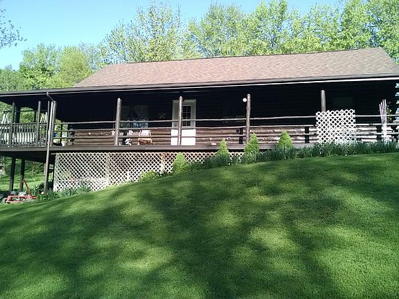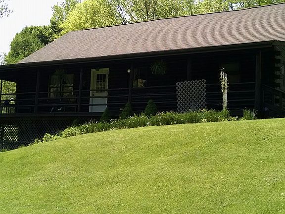 Beautiful Amish built log home set on 2.767 acres. The house has 3 spacious bedrooms, including a loft master bedroom overlooking the majestic stone fireplace and open concept dining/living area. 3 full bathrooms and a partially finished basement with a wood burner complete this charming home. A homemade clubhouse/jungle gym in the backyard is perfect for children of all ages. An additional adjoining 3.482 acres with an older 1 1/2 story storage shed is also for sale for $43,000. Showings by appointment only.