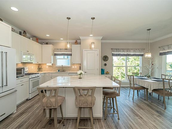 Expanded Maple plan by McBride, with 3 car insulated drywalled, painted epoxied flR garage, expanded driveway,Over $100k improvements. Office w Luxury plank flooring,most of the main area is right off the foyer Kitchen offers expanded (5X5) island, white cabinetry ,quartz countertops custom slide out racks, gas range, lots of cabinetry, pantry, overlooking your lush woods as your backdrop. Entertaining made easy with this open flr plan right off the greatroom, accented w fireplace w raised marble hearth, kit,breakfast room leads you a custom PVC COMPOSITE DECK, 12X12 covered w fan, lights, 16x16 open deck w retractable w awning, Luxury master suite, split bedroom floor plan, w/out finished lower level offers a 4th bed, full bath, recreation room, plenty of storage, prof. landscaping added w stone work retaining wall. (27x13)paver patio, Outside LED light fixtures, patio and front entry, irrigation, high efficiency furnace, insulated windows. Property extends pass fence, see survey