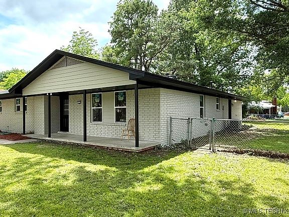 Completely remodeled ranch-style home featuring 3 bedrooms, 2 full bathrooms, and 2 spacious living areas. The open-concept kitchen boasts a massive island, new cabinets, granite countertops, and a cozy fireplace with access to the backyard. Enjoy rear-entry garage parking and a large 14' x 26' storage building with electricity. Updates include new flooring, paint, light fixtures, bathroom mirrors with LED lighting, new windows, and a new roof. Relax on the oversized front porch with modern 4" LED lights. Generous driveway offers ample parking. Move-in ready with style and space! Owner/Broker.