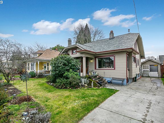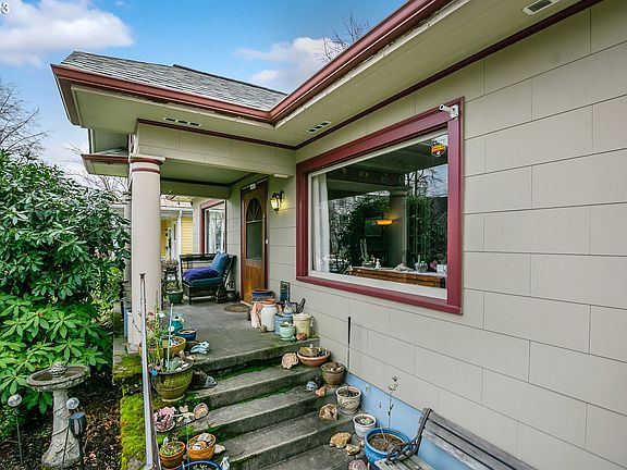 Great Sellwood location. Charming 1923 craftsman bungalow with covered porch, off street parking & one car garage. 4bed/1bath. Livingroom wood burning firepl, diningroom coved ceiling, kitchen+nook, 2bedrm, updated bath on main. Built in cabinets, living, dining, hall w/laundry shoot. 2bedrm & storage up. Basement unfinished, laundry, lots of dry storage & outside entrance. Fenced backyard & patio. Security cameras stay. Solar owned & warranty transferable. Enjoy Sellwood restaurants & shops!