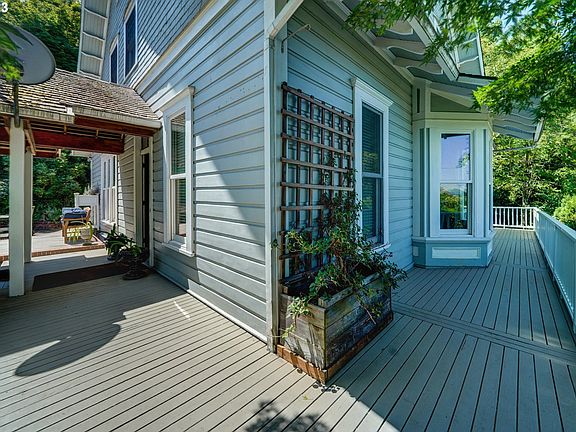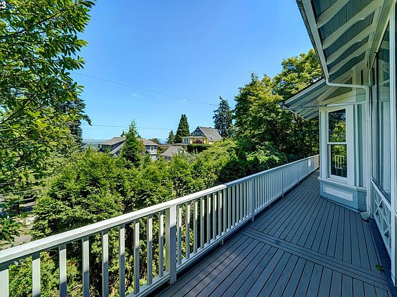 Beautiful view home that sits high up off the street in Portland Heights! Gorgeous main level with soaring 10' ceilings, large kitchen and dining area, bay windows in the living room, and show stopping wall of windows in the sitting room with gas fireplace and city views. Three bedrooms up with bonus finished attic space and sleek bathroom finishes. Lower level has an additional bedroom and bathroom, along with a storage and utility room. This home has sweeping views, with a deck spanning the front of the house, patio, and gazebo style sitting space off the front entry door. New furnace 2022, AC Fall 2021. Ainsworth Elementary and Vista Spring Cafe are just blocks away. 5-10 minute drive to downtown, OHSU, Hoyt Arboretum, Washington Park, NW 21st/23rd and the Pearl District. [Home Energy Score = 1. HES Report at https://rpt.greenbuildingregistry.com/hes/OR10219740]