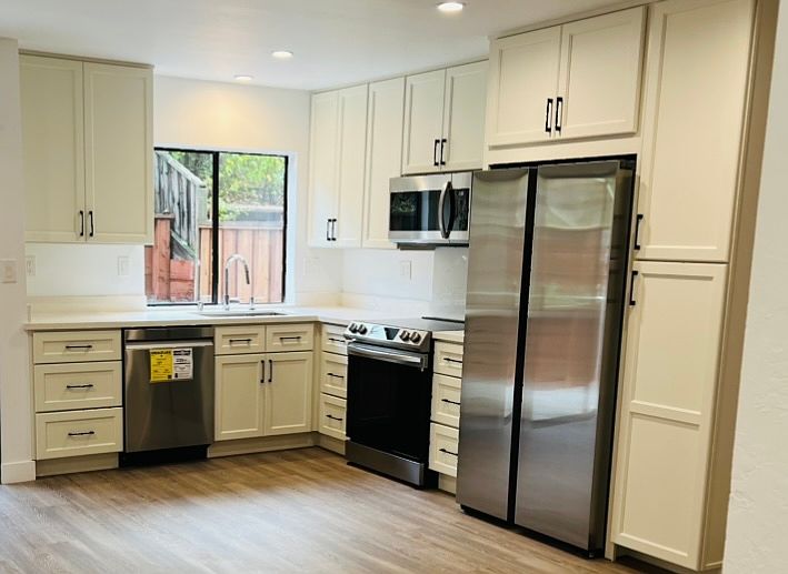 CHARMING newly remodeled, townhouse in central and convenient part of Walnut Creek. 2 Bedrooms, 2.5 bathrooms, 1200 sq ft. Private patio, Pet friendly (small dog). Discover this bright and airy, newly remodeled two-level townhouse designed in contemporary elegance and thoughtful details throughout. Spacious open-concept kitchen and dining area with modern stainless-steel appliances. Powder room and in-unit laundry conveniently located off the kitchen. Private back patio is perfect for relaxing and entertaining. Living room with gas fireplace, contemporary glass shield, and a Samsung 65" TV included. Recessed ceiling LED lights. Upstairs: two large en-suite bedrooms for maximum comfort and privacy. Master bathroom features a sleek walk-in shower. Guest bathroom includes a bathtub. Includes one covered carport plus guest parking. Community pool. Ideally located just 5 minutes from Walnut Creek Bart, major freeways, and local shopping and dining. Offers both convenience and tranquility. Renters responsible for gas, electricity, water and internet. Owner covers garbage. Deposit: One month's rent due at signing. Pet: one small dog allowed (no puppies) Pet deposit $1500 is due at signing. No smoking allowed inside or outside. Must comply with CC&R and condo rules Come and see this unique, modern and impeccably maintained home. It's a truly a must-see Renters responsible for gas, electricity, water and internet. Deposit: One month's rent due at signing. Pet: one small dog allowed (no puppies) Pet deposit $1500 is due at signing. No smoking allowed inside or outside. Must comply with CC&R and condo rules
