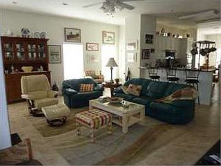 Impeccably maintained custom home in a waterfront neighborhood. The interior of this property features numerous upgrades including: 18 porcelain tiles throughout, 10' ceilings textured ceilings (no popcorn, remote controlled gas fireplace with a granite surround, bull nose corners, tankless water heater, whole house water filtration system, solid interior doors, and an abundance of windows providing plenty of natural light. The large kitchen is very impressive with thick granite countertops, high-end stainless appliances such as the super-quiet Bosch dishwasher, the double convection wall oven, and the Miele 36" smooth-top 5-burner gas stove top. Armstrong 42" cabinets with pull outs and carousels offer plenty of storage. There's also a roomy pantry with extra shelving up to the ceiling. The large master bedroom features a built-in armoire; the master bath has a large tiled shower, stand alone bath tub, and large vanity. The two guest bedrooms are spacious and both have over-sized closets. The 20'x20' garage has a vented exhaust fan, attic access leading to 160 square feet of decked storage space, and a garage door opener with a battery backup. The exterior of the property is virtually maintenance free with a xeriscape style landscaping design, leaving no grass to mow. The home backs up to a greenbelt area providing a private setting. The 15'x30' rear patio provides plenty of space to entertain. Other important exterior features include a whole house natural gas generator, fabric shield style hurricane protection for the windows, an 8'x10' storage building, built in gas grill, and a sprinkler system on a well. Boaters are provided access to a private boat ramp if they join the $35 per year homeowner's association. Brokered And Advertised By: LEVIN & RINKE RESORT REALTY, I Listing Agent: JEREMY JOHNSON