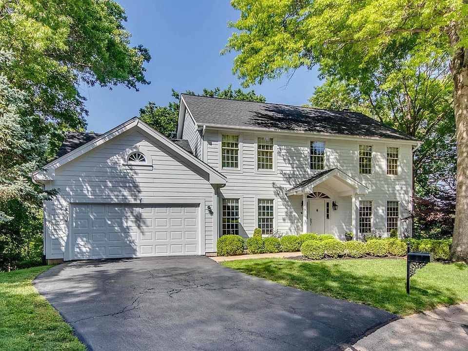 BACK ON THE MARKET, (no fault of Seller) WITH New Roof soon, NEW Carpet and a huge price drop! Opportunity knocks to purchase in this desirable private cul de sac neighborhood. This Gorgeous home features 4 Bedrooms, 3.5Baths & sits on a serene lot. Wood staircase separates the formal living and dining rooms. Spacious light filled family room w/ wood burning fireplace & wet bar. Updated eat in Kitchen with 42" Custom Cabinets, Island, granite tops (all appliances stay), breakfast Room with a planning desk. Main Floor Mud Room off the garage/kitchen. Large deck overlooking 1/3 acre level wooded lot. Upstairs is 4 bedrooms including the Master Bedroom with vaulted ceilings, large bath with soaking tub/separate shower and double sinks, and a walk in closet. Walkout Finished Lower Level w/ space for entertaining, second fireplace and bar area, potential for 5th bedroom, & a full bath, with a concrete patio. Over 3700 sq. feet of living area! Large yard and Inground Sprinkler system.