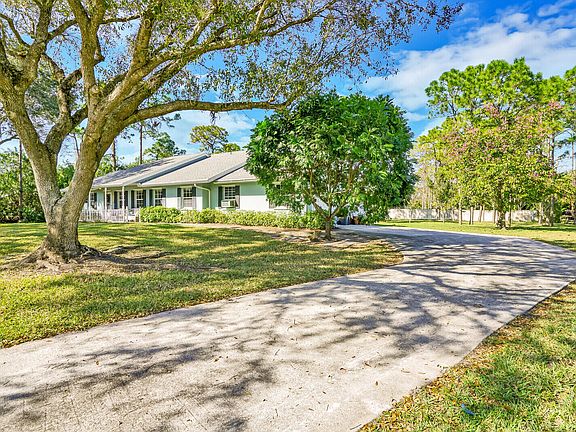 Farmhouse Charmer. One Story CBS built 3/2 split floor plan. Two Car Side Load Garage and Fully Fenced 1.14 acres. Screened porch overlooking private backyard with Utility Barn & Kennel. New Rheem 16 SEER 3.5-ton AC in 2022. Roof is 2013. Large Entertaining spaces. Kitchen overlooks Family Room with Brick Fireplace. Eat-in Kitchen, Spacious Laundry Room with Full Size Washer and Dryer. Vaulted ceilings, Neutral White walls. RO system for Kitchen sink. Generator Ready electrical. Located on a private no through street just north of Westlake. Incredible location with proximity to I-95, Turnpike, Downtown West Palm Beach and International Airports. NO HOA