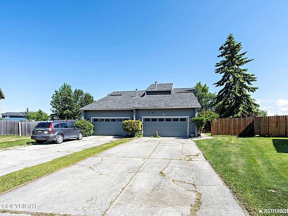 **Open Sun 1-4** What's not to love with this zero lot line. Upgrades galore, NO HOA dues, huge driveway that can park 6 cars, double gates to back yard for big boy toys & the yard is a gardeners delight! At the end of a cul-de-sac, close to parks, trails & backs to Klatt elementary. Sliding door leads to south facing deck. Xtra window added upstairs plus a newer bay window in kitchen. A MUST SEENew garage heater being installed shortly. Spectacular views of the Chugach mountains during winter time. Beautiful walks along the bluff in the neighborhood. The trails and walking paths in this neighborhood are endless.