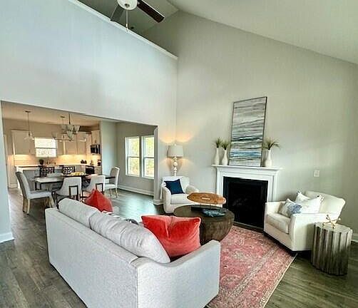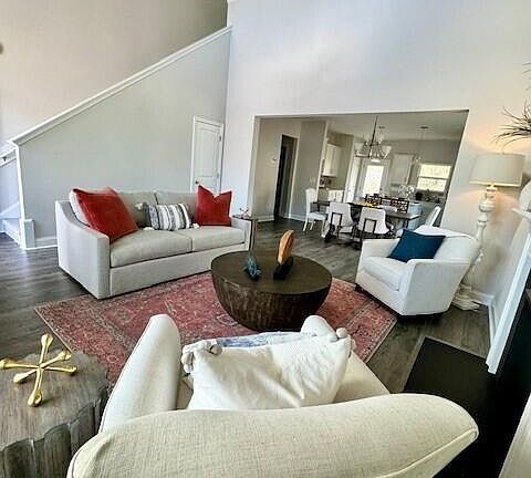 Move-In Ready and Last of The Cottage Series in Olde Georgetowne! The Kent by Dream Finders Homes is an amazing floor plan with so many unique features. This home takes the desired ranch style look and turns it into an extremely practical 2 story plan. From the front door into the home, you'll find a living room with a 2 story ceiling and cozy fireplace. The living room opens straight into the beautiful, bright kitchen making for great entertainment space. The first floor primary suite boosts a large en-suite with separate his and her vanities. The second floor features 3 large bedrooms with walk-in closets. The ''open to below'' loft is a very popular feature. This space is great for a playroom, office, an extra living room or ''cave'' for anyone in the family, it's larger than it appears in pictures! In addition, there is great walk-in attic space for those people with stuff! The covered back porch backs up to the wooded area for extra privacy. This is a must see home!