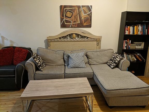 NOTE, this is a real 1 bedroom apartment, not a studio as some have asked. It just has two sleeping spaces as the tenant used it as a pseudo two bedroom apartment. NOTE, as noted below this is a sublet. We can make a deal from 1 to 6 months. An extension may be possible (and probably likely) on a month to month basis after that depending on the circumstances, but we wouldn't be able to confirm that until the spring. Huge Furnished 1 Bedroom Apartment with two sleeping areas in a very trendy area of Bushwick filled with local artists, musicians, etc. There is a very nice trendy cafe on the corner and plenty of shops and food options nearby. This place is available for immediate move in. This place is fully furnished. Cooking materials are available for use in the kitchen. This apartment is immense and about the size of many two bedrooms. The size is approximately 800 square feet. The living room was huge and part of it has been sectioned off to function as a second bedroom. A room divider is available in the apartment to allow you to convert this room into a psuedo 2 bedroom. Air conditioners are available in the apartment and a tv has been provided. There are soundproof windows installed that block out the vast majority of outside sound. These are perfect during the winter as they can be kept closed and the apartment would be pretty quiet as a result. The building is well taken care of and there are no issues with water or heat. We normally don't allow pets, however since this a short term we are willing to consider them depending on the pet. There are two subway stations within a couple of blocks and the closest one is the Halsey St stop on the J train. There is also a citibike station around the corner. There is an elevated subway nearby, however this apartment has been equipped with soundproof windows that block the vast majority of the sound. With the windows fully closed this apartment is actually quieter than most other apartments you can find in the city. If you come check out the place, you can see for yourself. Tenant is away for some months and is looking to sublet the place for a short to medium term. We can do 1-6 months right now, until end of April. An extension might be possible in after April, but will not know that until later in the spring. We may be open for negotiations depending on your start dates, length, and qualifications. Please note that we have priced this apartment to be the cheapest on here for what you get. There is a background and credit check and an associated fee. Note, we furnished room in another property available as well, if that is more what you are looking for. Note: we indicated parking was available. For clarification we mean there is plenty of street parking in the area. Not that its included with the rental. Note: we may consider a pet, however are giving preference to no pets due to previous issues. Note: this unit has a fire escape. People tend to use it as a balcony so we have indicated it as such. But the Balcony is a fire escape.