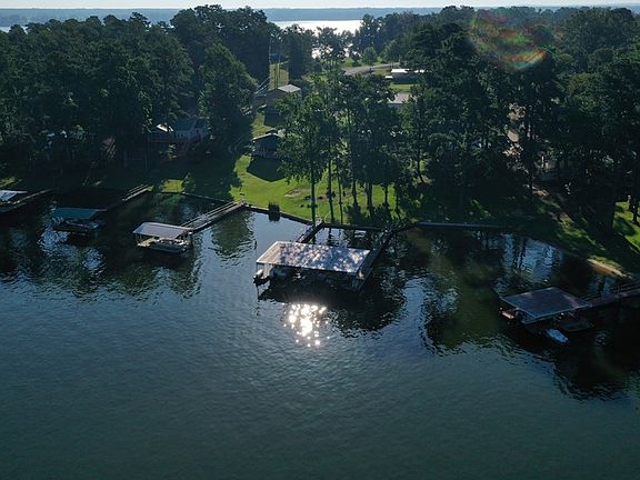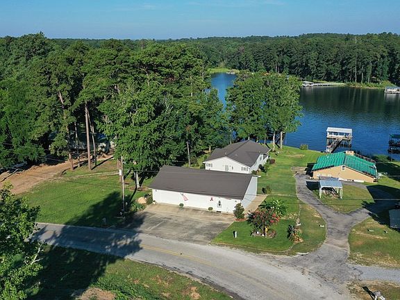SPECTACULAR VIEW from screened porch of this beautiful lake home! Covered double dock is 100 ft from the home! FLAT LOT! Home has open floor plan, granite countertops in kitchen & baths, stainless appliances, and 2 king master bedrooms with bath & walk-in closets in main home (1512 sq ft). Property has detached oversized 2 car garage with office & 1 bedroom/1 bath efficiency apartment (608 sq ft)!