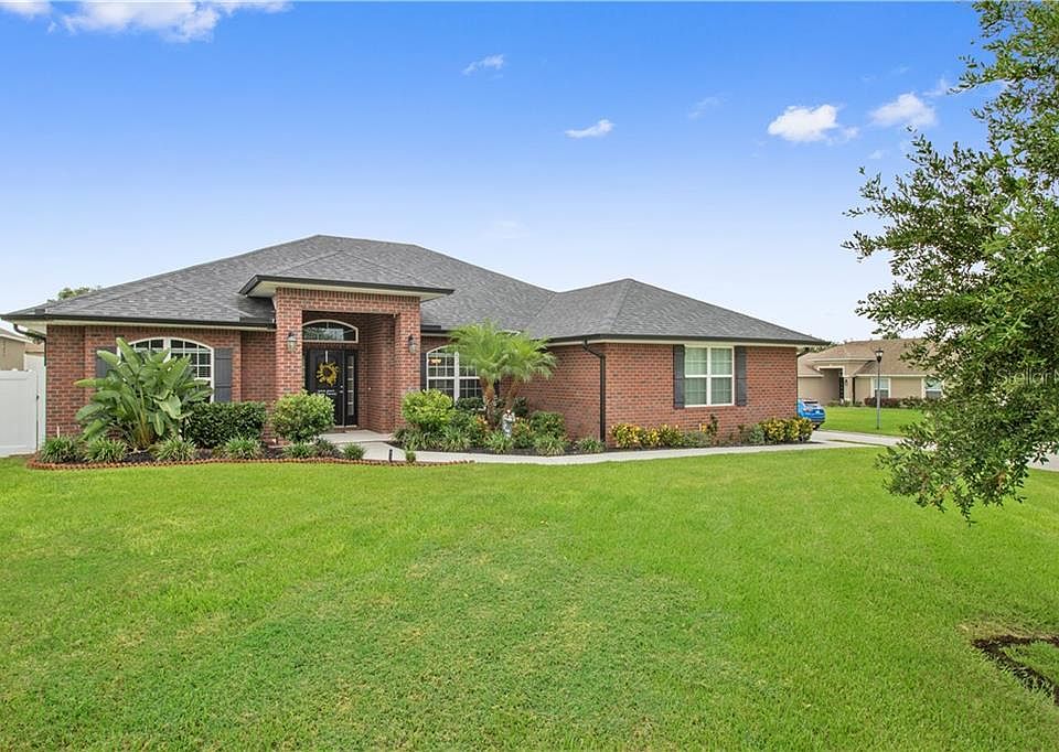Look no further! This four bedroom two bathroom plus den home shows like a model! The landscaped and manicured front yard welcomes you with a side entry winding walk path to the beautiful bricked facade home and custom door. Upon entering, you are immediately greeted with vaulted ceilings and a wide open floor plan. Just off the foyer, is a spacious den that can also be used as a second living space or office. The dining area is bright and has a large picture window that enjoys views of the front yard. The great room and oversized custom kitchen is perfect for entertaining. The kitchen boasts plenty of cabinetry, granite island, loads of countertop space and pantry as well as a roomy breakfast nook. The triple split plan offers a large master bedroom with walk in closet and en-suite bathroom. The other three bedrooms are large, bright and share the oversized second bathroom. The covered back patio is perfect for morning sunrise. With a side entry garage, rain gutters, custom landscaping, and much more this home is turn key and ready for its second owner.
