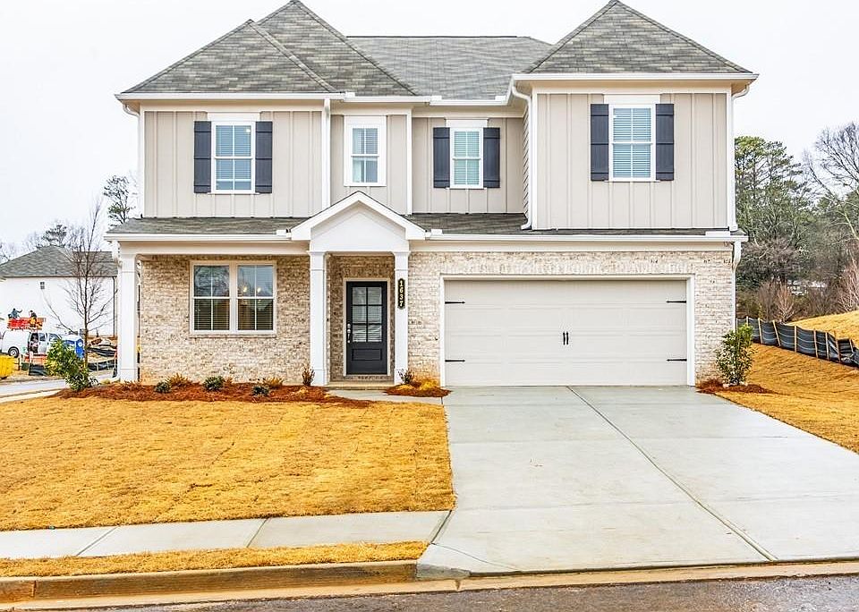 TRATON HOMES – ADDISON F – LOT 75 – The sprawling 5 bedroom, 3 bath Addison plan offers over 3,000 sq. ft. of efficiently designed living area. Main level highlights include 9 ft. ceilings, an open island kitchen with quartz countertops, Whirlpool stainless appliances, a tile backsplash, and a large walk-in pantry. The main level also includes a family room, breakfast area, study, and a guest bedroom with an adjacent full bath. Upstairs features a luxurious owner’s suite with a large walk-in closet, double-bowl vanity, soaking tub, and a separate shower. Other highlights of the upper level include a large loft, a conveniently located laundry room, and three additional bedrooms - two of which feature walk-in closets. This home is complete and ready now.