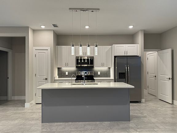 The modern kitchen is the heart of the home, featuring stainless steel appliances, sleek quartz countertops, and contemporary 2-inch blinds all combining to deliver a refined and functional space. Energy-efficient windows and doors, LED lighting, tankless water heater, water softener, and quality construction make this home as practical as it is beautiful.
