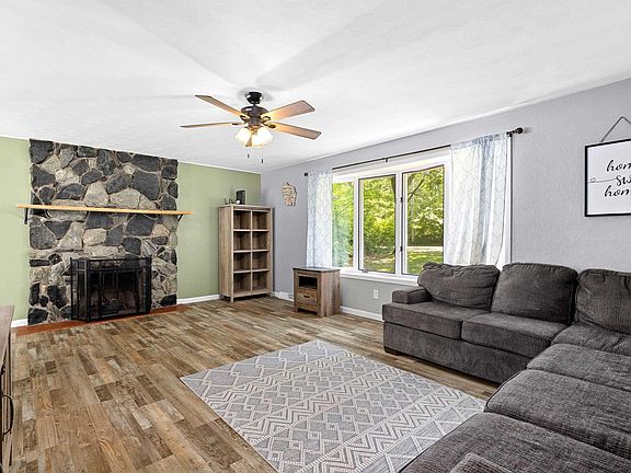 Welcome to this 3 bdrm home situated on an acre-sized wooded lot, this property combines the tranquility of nature with the comforts of modern living. Boasting two fireplaces, the home radiates warmth and elegance throughout its interior. The vinyl plank flooring adds a touch of sophistication while ensuring durability and easy maintenance. The property includes a private well and a newer septic system, offering convenience and peace of mind. The attached two-stall garage, along with an additional detached two-stall garage and a shed, provide ample space for parking, storage, and hobbies. The dining room, featuring sliding doors that lead to a deck, presents a picturesque setting with views of the expansive yard. The lower level has a finished family room that serves as a versatile space for relaxation and recreation. With another set of sliders leading to the backyard, this area seamlessly integrates indoor and outdoor living, allowing for effortless enjoyment of the surrounding natural environment.