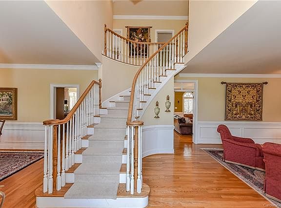 This beautiful home, in its fabulous south Charlotte location with almost 6000 sq. ft. and 5 bedrooms and 4.5 baths, has it all! A grand, sweeping staircase welcomes guests. The bright and open floorplan is perfect for entertaining complete with an eat-in kitchen offering a center island, gas cook-top, double ovens, and stainless steel appliances. The spacious master suite offers a walk-in closet and master bath complete with separate vanities, separate tub & shower and private water closet. The full basement could easily be an in-law or nanny suite with its bar, fireplace, bedroom and full bath. Enjoy sweeping views of the private backyard from the deck, the screened porch or the private courtyard. The 3-car garage offers ample parking and storage.