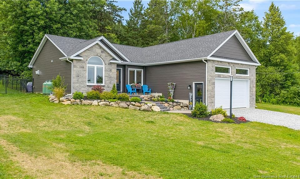 Easy one Level Living in new 3 year old Home on 3 Acres in Hampton with an awesome view of the Kennebecasis River Valley. It does not get much better then this Home. Home has a great fenced in yard with 2 separate fenced in areas for your Children & Dogs. This Home is a very nice open concept with the living room flowing into the kitchen with cathedral ceilings flowing along and crown mouldings on the top of the cabinets, roll outs in the pantry, Quartz countertops & a lovely ceramic back splash above the countertops. Off the kitchen we have a deck area to enjoy your special back yard. The deck has a roof over it. From the kitchen you enter the dining area which then flows into the Family/Den which is accented with a beautiful propane Fireplace to relax at. To the left of the Family room we have a hallway that takes us to the main bathroom & then on to the second bedroom. Between the kitchen & living room we enter the hallway that takes us to the Primary bedroom with ensuite & walk in closet. When we go down the spacius hallway to the right we have the Utility/laundry room & the attached Garage. This Home comes with many great features like glass doors on the showers, infloor heat in both bathrooms, central air & heat, generator panel for any power outages & a island with bartop in the kitchen. We are only about 25 to 30 minutes from Saint John & Sussex. There are many activities to do, swim, golf, fish, Curl, boat, hunting is minutes away or relax & enjoy the views.