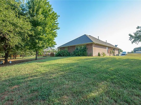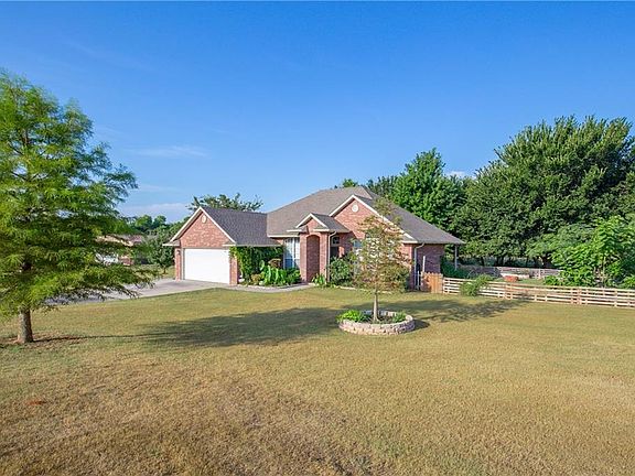 Wooded lot backing up to empty acreage provides TONS of privacy. Meticulously cared for garden and private outdoor living area boasting mature trees and is the perfect place for entertaining friends and family. BRAND NEW stainless steel appliances, new furnace with 25 year warranty, osmosis triple filtered water softener, new AC fan. Gorgeous wood look tile throughout the majority of house and tall ceilings with intricate trim work, built ins, and much more! LED lighting throughout the house and garage cuts down on electric bill and last for years! Established and desirable neighborhood with only 1 way in and out. Come see all this beautiful home in the Blanchard school district has to offer.