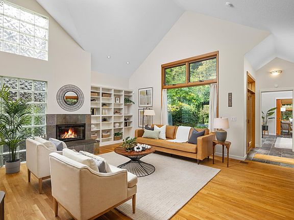 Forest Park Hideaway! Homes adjacent to Forest Park are rarely available and go quickly. Dramatic vaulted ceilings with light-filled living spaces. Custom double-pane windows, trimmed in clear vertical Douglas fir millwork and frame lush green outlooks of the masterfully planted grounds. Custom furniture-grade Doug fir free-standing cabinets, matching the millwork, stay with the home. Rare main level living with primary suite wing that opens to the lush yard. Each bedroom has its own, private full bath. Main floor den and art studio that could be a 2nd office, hobby space or yoga studio. 6,300 SF of patios, lawn, and lovingliy tended to garden full of unique and mature plantings. Located in the coveted Willamette heights neighborhood, property backs to 5,200 Acres of the Pacific Northwest wonderland of Forest Park! Located around the corner to the Meadow which leads to Holman Trail, Lower Macleay trail and Wildwood trail. Leave the car and wander to NW Thurman's cafe's, coffee shops, restaurants, boutiques and services. [Home Energy Score = 5. HES Report at https://rpt.greenbuildingregistry.com/hes/OR10222462]