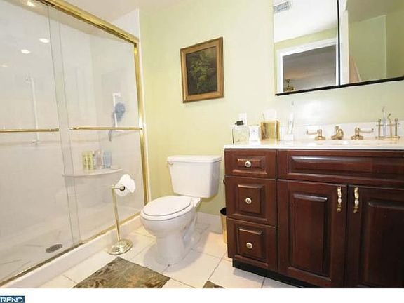 Largest 2 Bedroom 2 Bath corner apartment in the Terraces. This bright, sunny and pristine home has been freshly painted and is in move-in condition. It features a living room with sliders to the balcony, dining area, (both rooms with hardwood floors) a renovated gourmet kitchen with cherry cabinets and a Bosch dishwasher. The master bedroom has 2 walk in closets, a huge dressing area which could double as an office or nursery and renovated bathroom, as well as an inviting guest room and renovated hall bath. The apartment also offers its own washer and dryer and is situated a few steps from the elevator and storage room. The secure, maintenance-free building is also minutes away from major highways and downtown Philadelphia, either by car bus which stops right in front.