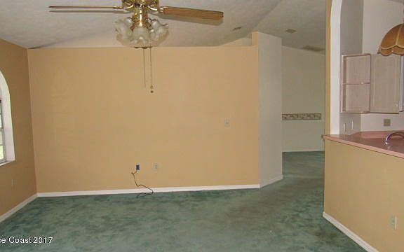 Large 3 bedroom, 2 bathroom home has a family room, formal living room, large dining area and an eat in area. The family room has French doors to a screened porch. The kitchen has a pass through to the family room. Master bedroom has wood laminate flooring. Master bath has tub/shower combination a large vanity. Dining, Living, family room and two smaller bedrooms have carpeted floors. The Kitchen has wood laminate flooring. Close to shopping, elementary schools and the new St John HeritageParkway. Buyer's responsible to pay for turn on of utilities for inspections.