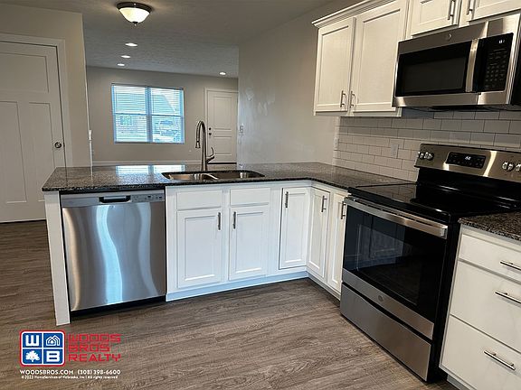 One year old, 1237 sq ft townhouse. There are 3 bedrooms, main floor laundry (washer and dryer stay) and 2 baths. The main floor is all luxury vinyl incl. bedrooms. The kitchen has white cabinets and granite countertops, with SS appliances. There is a bath rough in and 2 egress windows in the unfinished basement an attached one car garage, all electric, UGS and front porch to sit and relax!