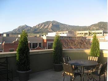 Simply the best in downtown Boulder at this price! Location on Pearl just off the mall, steps from fine dining. Outlook - 3rd floor, south facing, Flatirons&city views (360 views). Design - only 4 years old, very private, one shared wall, pop-up 13ft ceiling with tons of light. And best, a private, south facing 500 sqft terrace! Features custom retractable awning, lg storage space, possibility for rooftop deck, great open layout, fresh paint, secure building w/elevator, only 5 residential units.