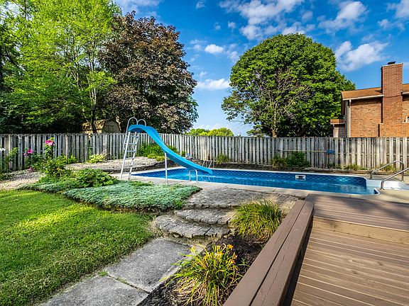 Ridge Hill Trails :: This classic beauty offers 4-br, 3-br, spacious and flexible living, and a wonderful in-ground pool. The main level features a bright and inviting living room with a fireplace, a modern kitchen with updates throughout. A main-level bedroom and full bath adds convenience, while the upper level includes 2 additional bedrooms with adjacent bath. Primary suite boasts natural light with the vaulted ceilings and step out balcony overlooking the backyard! The fully finished basement offers even more living space, including a large rec room, full bath, and walkout access to a peaceful brick patio-perfect for entertaining or relaxing. A well-equipped laundry room, ample storage. The outdoor oasis offers a freshly painted deck, fully fenced backyard! Fresh paint throughout the entire home, with a little TLC, you could make this your forever home!