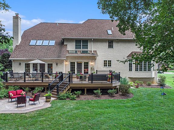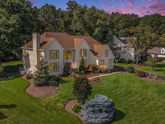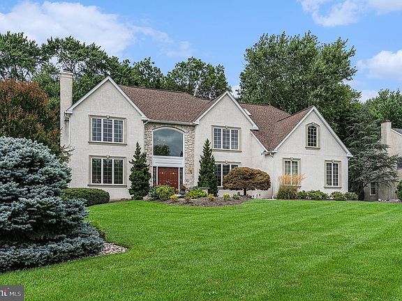 Wow, this French Manor house sounds absolutely stunning - and this residence has approximately 5,000+ square feet which includes the finished basement and offers plenty of room for comfortable living. Located in the prestigious Dawesfield neighborhood, it enjoys the benefits of being in the highly rated Upper Dublin School District. The wooded lot and tranquil surroundings provide a private and serene environment. The new TimberTech deck running along the entire back of the house, complete with low voltage automatic lighting in the deck rails and hardscaping, creates a perfect space for relaxation and entertaining. The front entrance boasts a new double door entry with a large palladian window, adding to the overall appeal. Inside, the house is equally impressive. The dramatic foyer with a curved hardwood staircase and an oversized brass motorized chandelier sets a grand tone. The first floor features a spacious library/office, ideal for those who work from home, and a bright living room with a marble fireplace is open to the dining room showcases beautiful custom millwork t/o the first floor and a large bay window overlooking the serene backyard. There are hardwood floors on the first floor, 9' ceilings and recessed lights. The renovated kitchen is a chef's dream with granite countertops, custom cabinetry, an 8' island, and high-end stainless steel appliances, including a Subzero refrigerator and three ovens. The adjacent breakfast room with skylights and access to the deck offers a perfect spot to enjoy morning coffee or host BBQs with guests. The great room, with new hardwood floors, skylights, stone floor-to-ceiling fireplace, and a hardwood back staircase provides another inviting space for relaxation. The laundry room/mudroom, powder room, and three-car garage complete the first floor's well-thought-out layout. Upstairs, the second level houses four large bedrooms, including a Jack & Jill bedroom with a shared tile bathroom and an attached study room. Additionally, there's a princess suite with a private tile bathroom and a main bedroom suite featuring a tray ceiling and a luxurious ceramic tile bathroom with a steeping bathtub, stall shower, private commode, and ample closet space. The finished basement, offers versatile spaces, including a home office with built in desks for two people, a billiard area, a family room with a dry bar, and plenty of storage with an abundance of closets, including a cedar closet and some metal storage racks. The location is also highly convenient, within walking distance of the newer Promenade Shopping District with various shops and restaurants. Overall, this property seems like a dream home, combining elegance, comfort, and functionality. Anyone would be lucky to call this place their own! Call Agent for more upgrades and improvements. Stucco has been tested and remediated by removal of original stucco on the front and garage side of the house and Canamouldings were added around the windows for beauty and protection.