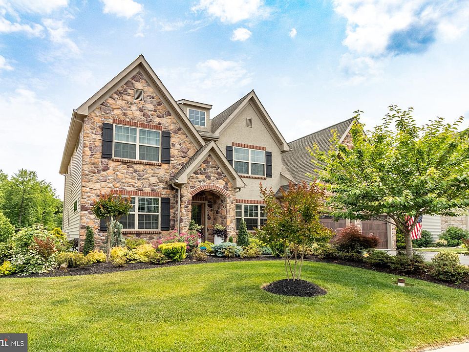 Absolutely stunning home shines inside and out! The former model in this, Keystone Custom Homes built, Scenic Manor community offers all the best in features and amenities. Impeccably appointed and generously upgraded, this home is sure to please. The stone-front Ethan Normandy model boasts over 5000sq/ft of living space, with 4 bedrooms and 3.5 baths on three levels. A modern gourmet kitchen with 10' granite island and stainless appliances opens into the morning room with cathedral ceilings and tree-lined views. Natural light floods the family room highlighting the stone fireplace, custom built-ins, and engineered hardwood flooring that spans the main and upper levels. The elegant owners suite featuring a lighted tray ceiling, dual walk-in closets, and a luxurious Venetian bath provides a spa-like retreat. Fully finished lower level offers a huge club room w/pool table, full guest bath, bonus room, and sliders to the extensively hardscaped rear patio and fire pit. Additional home features include oversized 2-car garage, dual water heaters, water treatment system, landscape sprinklers, patio lighting, and rear facing deck. Convenient to commuter routes, APG, renowned Bulle Rock golf course, historic Havre De Grace, wineries, and dining. You will love to call this home!