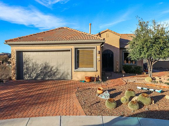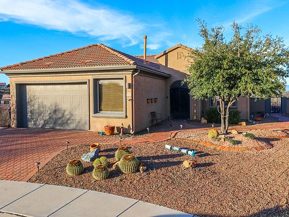 Views, views, views, this property has them! Located in a gated community at the end of a cul-de-sac, common areas border the property, you'll be sure to enjoy your privacy here. Sitting above historic Canoa Ranch & the fairway, you'll fall in love with the panoramic views of the Santa Rita, Rincon & Catalina mountain ranges & city lights. This 2 bedroom, 2 bath, and a den, that is perfect for an office or formal dining room, tile throughout except the guest bedroom & master closet. Kitchen features granite countertops, travertine tile backsplash, stainless steel appliances & maple cabinets. In the open-concept great room, you'll enjoy large windows that showcase the amazing views, lovely built ins & a gas fireplace. This beautiful well-maintained property is waiting for you to call home.