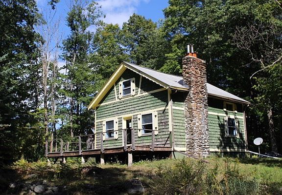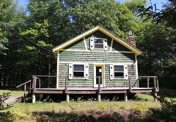 Charming country home ready for your esthetic touch. Centrally located among the natural beauty of the DAR State Park, Chapel Falls and Ashfield Lake. The Ashfield Trail system with hundreds of acres is at your backdoor. This cottage style house has lovely gingerbread trim in need of paint with a stone chimney. The first floor has a 23x13 s.f sunfilled living/dining room with red maple floors, vaulted ceilings, wood stove and spiral staircase. There is a first floor bedroom, kitchen and full bath. The second floor has two bedrooms, one finished with wood floors and the other gutted ready to complete. Outdoors there is 390 s.f. deck and large wood shed. There is an energy saving State of the Art Pellet Boiler with wall radiators. The septic system is brand new and the deep well provides delicious water. Would work well as a starter home or getaway. The house is being sold "as is" but worth the effort. On a quiet road yet 30 minutes to Noho and Greenfield. All this and fiber optics too