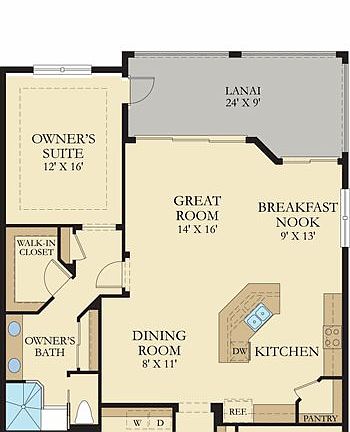 This Coach Home is an airy retreat. The heart of the home is the living space, seamlessly blending an open island kitchen, formal dining space plus breakfast nook with the great room - all with two sets of glass sliders leading to a screened lanai. The serene Owner's Suite features a tray ceiling, dual sinks and an ample walk-in closet, plus dual sinks and standing shower. This split floorplan offers two additional guest bedrooms with a shared guest bathroom. The Study is perfect for a home office or quiet retreat. Featuring a private elevator to the the second floor living area from the grand stairwell entry or the side-load two-car garage.