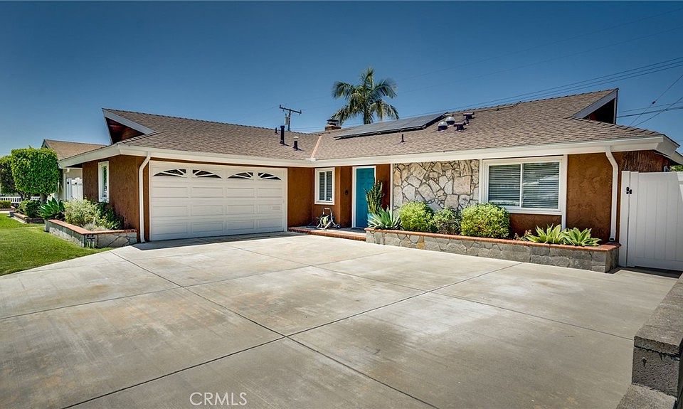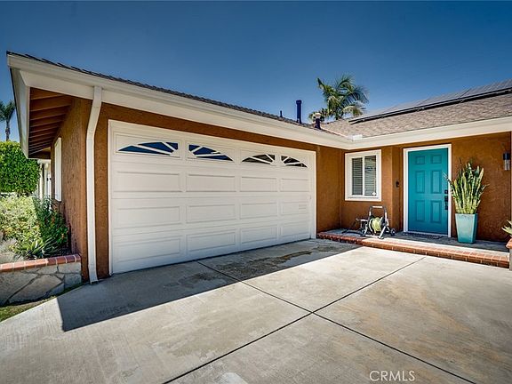 This is the one! A gorgeous beach home with a spectacular rock waterfall pool and spa. It all starts with really nice curb appeal and an extended driveway with RV access. Once inside, there is a large dining area, adjacent to the kitchen. The kitchen has been remodeled with updated cabinetry, granite counters, Kitchen Aid stainless steel appliances, a built-in wine cooler + the fridge included with the sale. The formal living room features a gas fireplace and slider leading to the rear patio. The hall bathroom has been updated with a new vanity, a marble tiled shower enclosure with a bathtub, porcelain tile flooring + a solar tube for extra lighting. There are 3 nice sized bedrooms with the primary bedroom at the rear of the house. The primary bathroom has an expanded tile shower, new vanity and tiled floor. Bonus features include; hardwood flooring in the L/R, hall & bed's, recessed lighting, smooth ceilings, crown moldings, newer paint, dual pane + garden windows & slider, plantation shutters, rear window awnings, upgraded heating & A/C, tankless water heater, rain gutters, 200 amp electrical panel with sub panel, rain gutters + roof replacement in 2009. The stunning West facing rear yard has been completely renovated with a redone pool deck, Pebble Tech surfaced pool & spa with a rock facade waterfall, updated pool heater, covered patio with a heater, lighting and retractable screens plus nicely landscaped vegetation and block wall fencing. This lovely home is also walking distance to award winning schools, a park, golf, shopping, restaurants and is only a 5 minute drive to the beach!