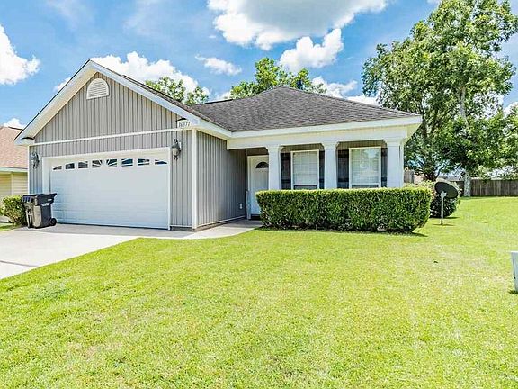 Well maintained 3 bedroom, 2 bath home in the quiet subdivision of Woodland Trace that has sidewalks and a community park! This home is CLEAN and MOVE-IN READY!! Open floor plan with high ceilings in the living area complete with gas fireplace. Spacious Master bedroom, master bath has double sinks and 2 walk-in closets. Covered patio with gas hook-up for your grill. Perfect sized back yard that is fully fenced and ready for your pets. Double garage with space for tools as well as a small storage shed in backyard located right off of the garage. This home is conveniently located for an easy commute to Mobile or Pensacola and just a short drive to the beach. USDA eligible. Call for your appt today.