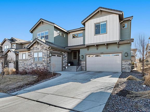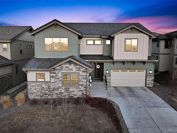 This is the Epic home you've been waiting for! Luxury living paired with impeccable design make this 4 Bed/3.5 Bath +Office & Loft, the ultimate entertainer's dream in the coveted master-planned community of Anthem Highlands. Stunning designer upgrades adorn the open main floor including: a lavish gourmet kitchen w/high-end SS appliances- hood, dishwasher, Kitchen Aid fridge, Wolf gas cooktop/double oven, Sub-Zero Wine fridge w/space for 120+ bottles, quartz counters, custom backsplash w/marble inlay, grand island w/ seating for 6+, and built-in live-edge bar top table. The acacia wood floors guide you from the gourmet kitchen through the open floor plan to the vaulted ceilings of the living room accentuated by the gas fireplace. The mudroom just off of the garage entrance creates the perfect storage and drop-zone space. The generous office space is tucked away from the main living space and surrounded by ample closet storage. The formal dining can't be missed as it features a custom, built-in bar room with euro-glass & built-in shelving. Upstairs the relaxing primary retreat features a private sitting area (or second office, yoga studio etc.) dual walk-in closets and 5-piece jaw dropping ensuite bath with no expense spared- spa shower with dual heads, stand-alone tub, dual vanities and quartz counters. Two spacious secondary bedrooms with ample walk-in closet space, a full bath with separate dual vanity sink area, conveniently located laundry, and loft complete the second floor. You won't want to miss the fully finished basement with 6 full size (yes sleeps up to 12) custom, built-in bunk beds with open rec room, included playhouse, & a fourth bedroom with extensive walk-in closet. This resort-like community features a 32,000 sq. ft. Rec/Fitness Center, 2 pools, 22 parks, 48 miles of trails, tennis/bball courts, events, 2 of the highest ranked Adams 12 schools-Thunder Vista (within walking distance) & PRA. Don't miss this opportunity, schedule your showing today!