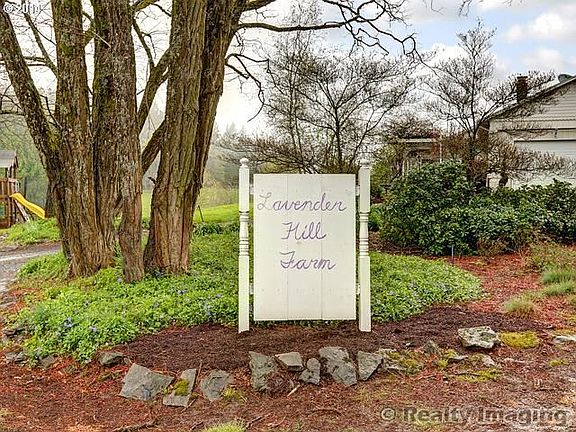 Lavender Hill Farm:Perfect balance of rural living,5 star Portland Schools & 15 min. commute to High Tech.Stunning views from every room; coast range, Hillsboro City lights & quiet pastoral landscapes.Vaulted sun-filled great room home boasts maple floors,spacious master with fireplace,office & sitting area.Enjoy sunsets & wildlife from Wisteria covered deck. Floored 24X44 pole barn,corral, 1905 log house & chicken coop dot the 13 acres