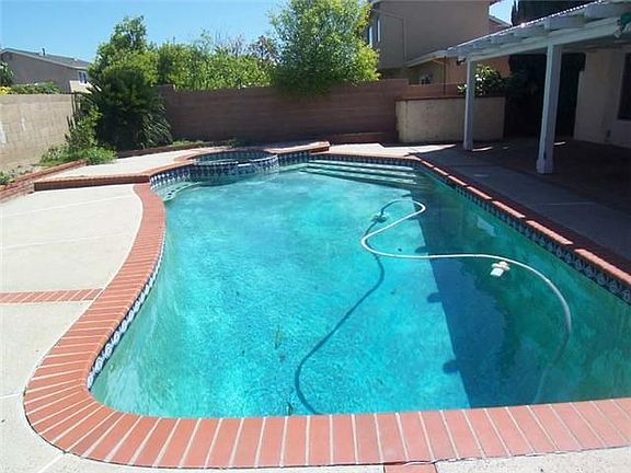 Beautiful inside tract location 3 bedroom, 2 bath, 2 story pool home. New paint inside and out. Crown molding along the entire ceiling. This home is move-in ready. Cozy fireplace, family kitchen. Entertain by the pool and spa. BBQ island is unfinished but just needs the appliances. Walk to Mile Square Park and Golf Courses. Bank Owned, will not last.