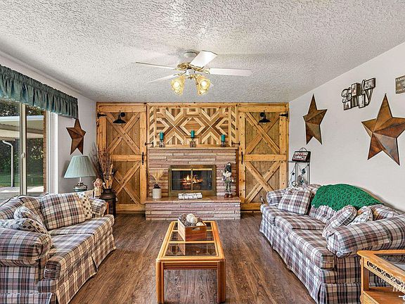 QUIET COUNTRY LIVING in a thoughtfully updated home on a .98 acre lot has SPACE FOR EVERYONE! Two living areas, both with wood burning fireplaces and a large dine-in kitchen. Spacious master bedroom addition in 2007 features an office nook and master bath with large jetted soaker tub, separate step-in shower, and walk-in closet. Step out back to the glorious covered patio for summer gatherings, BBQ's, and relaxing evenings to unwind and breathe in the fresh air. The detached 24x32 two car garage provides plenty of room for parking. The crown jewel of this property is the 48x60 insulated, heated and cooled shop, perfect for the enthusiast collector or home based business, the possibilities are unlimited. In the yard you'll find endless hours of play, gardening, and an in-ground fire pit to gather around on lazy summer nights. Bring your chickens, turkeys, and goats! New exterior paint (2024), space for RV and all the toys, no CC&R's THIS IS A MUST SEE!