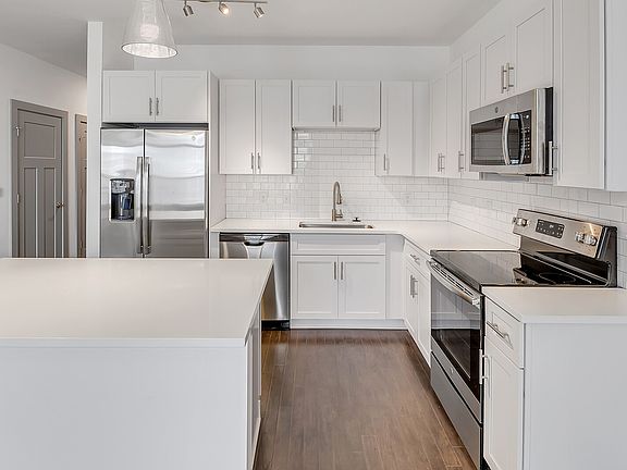 Here is your chance to call Silo House HOME! 1 Bedroom~ 1 Full Bath~ Beautiful kitchen with stainless appliances, subway tile backsplash, pendant lighting, and quartz! Bath with beautiful tile floors and subway tile shower~ Extra closets~ Washer, dryer and refrigerator to remain with the property! Den with barn door closure could be used as second living area or office~ Silo House is a 103 unit condo building which includes a pool, grilling area, and fitness center~ Key fob entrance!