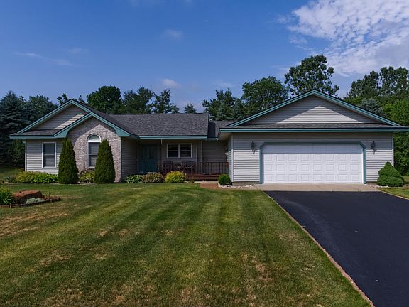 Frame built open floor plan ranch in a quiet neighborhood in Gaylord just minutes from downtown. Immaculate lawn, with irrigation & low maintenance landscaping, offers a very private backyard. Sit on your back porch and enjoy the view. Open floor plan, wood burning fireplace, kitchen w/stainless appliance & breakfast bar island, master suite with walk-in closet, main floor laundry. Game room in lower level. Central A/C with natural gas forced air. Large covered deck in rear & front of the house. Large 594 sq ft heated workshop with 1/2 bath. Attached oversized 2 stall garage. Paved drive.