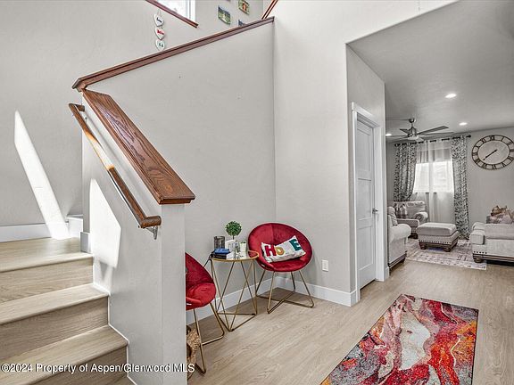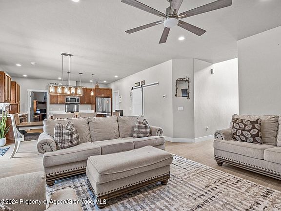 Welcome to your dream home in beautiful Rifle, Colorado. This charming property was built in 2022 featuring 5 bedrooms, 3.5 bathrooms, 3-car garage, RV parking and a main floor guest suite & NO HOA! The ground level features a large island kitchen with a walk-in pantry, a naturally lit dining room with access to the patio, and a spacious living room. Upstairs, there's plenty of additional space. Two bedrooms on the east side share a bathroom with a double vanity. The vaulted master suite is expansive, offering a luxurious four-piece bath and a walk-in closet. This home boasts several energy-efficient features, including an air sealing upgrade, LED lighting, low-emissivity windows, and a programmable thermostat.