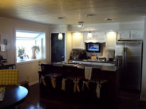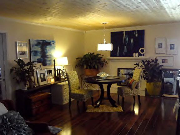 Welcome home to this wonderful open floor plan with current color palette. Great style with new Pergo flooring in open living, dining, and kitchen areas, crown moldings, new wood paneling on the ceilings and new light fixtures.The natural light is amazing. New countertops in the kitchen and new beverage cooler. If you would rather have the dishwasher, seller will leave it. Bedrooms all have big closets and hardwood floors plus charming patio out back.
