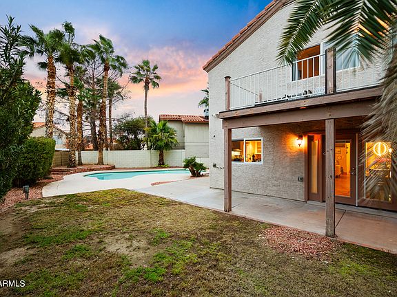 Welcome home to a generous cul-de-sac pie-shaped lot, this stunning abode offers the epitome of Arizona living. Picture yourself in a resort-style backyard, complete with an RV gate and breathtaking mountain vistas. Step inside to discover an open floor plan & recently rejuvenated interiors bathed in natural light. The spacious kitchen beckons with scenic views of the inviting swimming pool & majestic palm trees. Windows frame stunning vistas, ensuring every glance is a moment of awe. Upstairs, vaulted ceilings adorn the primary bedroom, seamlessly connected to a secondary room perfect for flex space or a home office. The primary suite spoils with a balcony, Arcadia door, & a luxurious separate tub and shower—a sanctuary to unwind after a long day. This home is a MUST SEE, offering the perfect blend of comfort and convenience with an outdoor shower, pantry, and all the little touches that enhance daily life. Plus, with easy access to the 51, 101, and 17, adventure awaits just beyond your doorstep. Don't waittake action and make this dream home yours today! Motivated Sellers.