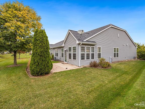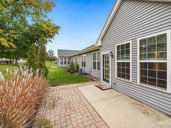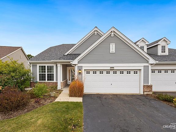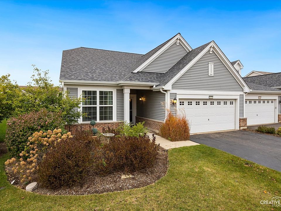 Last Call Before the Holidays! Don't miss your chance to settle into the sought-after Carillon at Cambridge Lakes, a vibrant 55+ active adult community offering resort-style amenities and a relaxed, maintenance-free lifestyle. This beautifully maintained Haydn Model half duplex ranch offers 1,685 sq. ft. with 2 bedrooms, 2 full bathrooms, a bonus room in the back that you might use as a 3rd bedroom, office or creative space. Step into the bright and open floor-planned living area with vaulted ceilings and hardy plantation shutters throughout-creating an elegant and airy atmosphere. The kitchen features granite countertops, white cabinetry, and a breakfast bar that opens seamlessly to the main living and dining spaces-perfect for entertaining or quiet mornings at home. The sunroom at the back of the home is the perfect year-round retreat, leading out to a private patio ideal for relaxing or enjoying your morning coffee. Your primary suite includes a tray ceiling, a large walk-in closet, and a private bath with dual sinks and a step-in shower and large soaking tub. Additional highlights include a 2-car garage, no basement for easy living, and thoughtful upgrades throughout. At Carillon at Cambridge Lakes, you'll enjoy resort-style amenities including a clubhouse with indoor and outdoor pools, a fitness center, walking and biking paths, tennis and pickleball courts, and a full calendar of social activities and clubs. The community is gated for peace of mind and conveniently located near shopping, dining, and easy access to I-90. Living in Pingree Grove means enjoying the best of both worlds-peaceful small-town charm with quick access to modern conveniences. Residents love the tight-knit community feel, where neighbors look out for one another and local events foster genuine connection. The village offers beautiful parks, scenic walking trails, and open green spaces, creating a relaxed, nature-filled environment. The HOA manages the following: roof, siding, gutters, trim, walkways up to front of home, driveway, snow removal and landscaping. They do not cover doors, windows or patios. Don't wait-this is your last opportunity to move in before the holiday season begins! Start the new year in comfort, style, and community at Carillon at Cambridge Lakes.