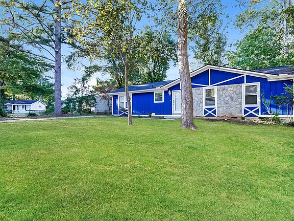 This 4-bedroom, 2-bathroom home in Decatur, GA combines comfort and convenience in a single-level layout. The exterior stands out with a distinctive blue facade and stone accents, complemented by mature trees and a spacious front yard that welcomes you in.