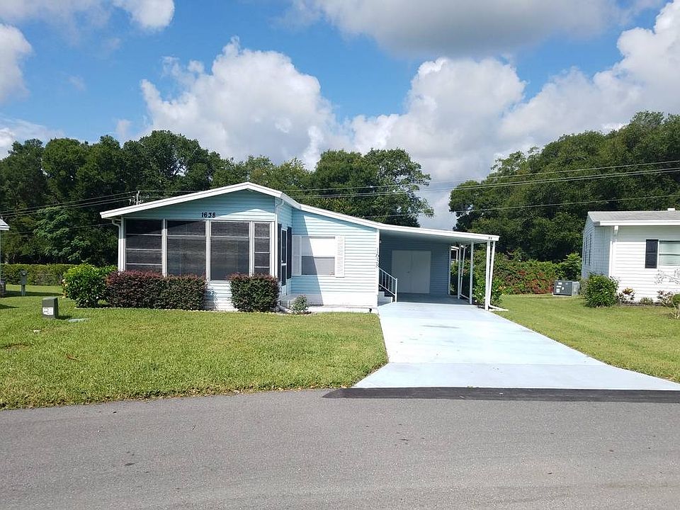 Located in a Senior Park with Monthly Lot Rent of $676. OVER-SIZED LOT WITH PRIVATE BACK YARD! WELL MAINTAINED 2 BEDROOM, 2 BATH HOME. SUPER-SIZED SHED WITH DOUBLE DOORS & INSIDE LAUNDRY. KNOCK-DOWN CEILINGS. *Home Offered Unfurnished. **2017 Frigidaire A/C LOCATED IN FOXWOOD VILLAGE, NESTLED IN GENTLY ROLLING HILLS. BEAUTIFUL FOXWOOD VILLAGE IS A 55+ PARK (80/20). 2 PETS UNDER 40 POUNDS, 20" AT SPINE, WITH BREED RESTRICTIONS. MOTORCYCLES ARE ALLOWED. FOXWOOD IS LOCATED IN NORTH LAKELAND NEAR SHOPPING AND RESTAURANTS. **$58 Monthly Pass Through Tax. **NO UTILITIES INCLUDED IN LOT RENT. FLORIDA ROOM 10 x 17 Great Spot to Enjoy the Weather! Ceiling Fan with Light. Sliding Glass Doors to Living Room. Door to Front Sidewalk. DINING ROOM 8 x 11 Open to the Kitchen and Living Room. Large Window Brings in Plenty of Light. Chandelier. Window Treatments. Laminate Flooring. KITCHEN 9.5 x 10.5 Plenty of Storage! Whirlpool Refrigerator with In-Door Water & Ice, GE Range, Built-In Samsung Microwave, Maytag Dishwasher and Disposal. Breakfast Bar. 2 Pantries. Laminate Flooring. LIVING ROOM 11.5 x 16.5 Spacious Room with Sliding Glass Doors to Florida Room. Ceiling Fan with Light. Window Treatments. Carpet. FLORIDA ROOM 10 x 17 Enter From the Living Room or Front Sidewalk. Ceiling Fan with Light. MAIN BATHROOM 8 x 8 Single Sink Vanity with Mirrored Medicine Cabinet. Tub and Shower Combination. Whirlpool Washer & Maytag Dryer. Vinyl Flooring. MASTER BEDROOM 11 x 13 4 x 6.5 Walk-In Closet. Ceiling Fan with Light, Window Treatments. Carpet. MASTER BATHROOM 7.5 x 9 Wide Double Sink Vanity. Walk In Shower. Linen Storage. Vinyl Flooring. GUEST BEDROOM 9 x 11.5 Standard Closet. Window Treatments. Carpet. STORAGE SHED 11 x 14.5 Large Shed with Double Doors. Plenty of Shelving for Storage. Door to Back Yard. ABOUT THE PARK: Foxwood Village Offers A Full Calendar of Social Activities and Clubs for Residents. Amenities include a Large Social Hall with Kitchen, Heated Pool and Jacuzzi & Sauna, Laundry Facilities, Exchange Library, Secure Mailboxes, Fitness Room and Shuffleboard Courts. Outside Storage Area for RVs, Boats and Trailers (Subject to Availability) Close to Lakeland Square Mall & Cinemark Theatre with 18 Theatres, Entertainment, Restaurants, Churches, Doctors, Lakeland Hospital and Beautiful Downtown Lakeland located on Lake Mirror. Information stated in description of home and park is not guaranteed. Responsibility for obtaining current fees, rules & regulations associated with the community/park/home is the Buyer's responsibility. Home sold 'As Is' without warranties or guarantees by seller and/or Snowbird Living. Home and Room sizes are approximate and not guaranteed.