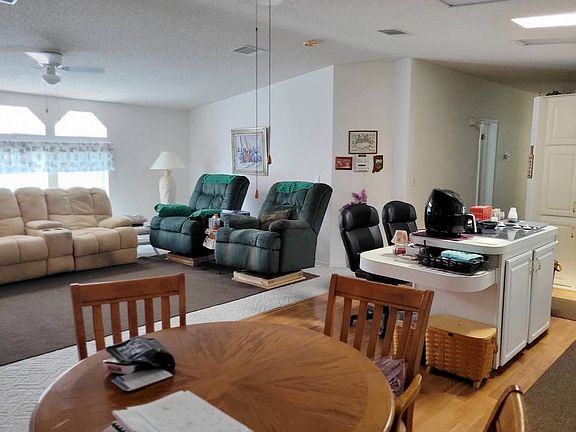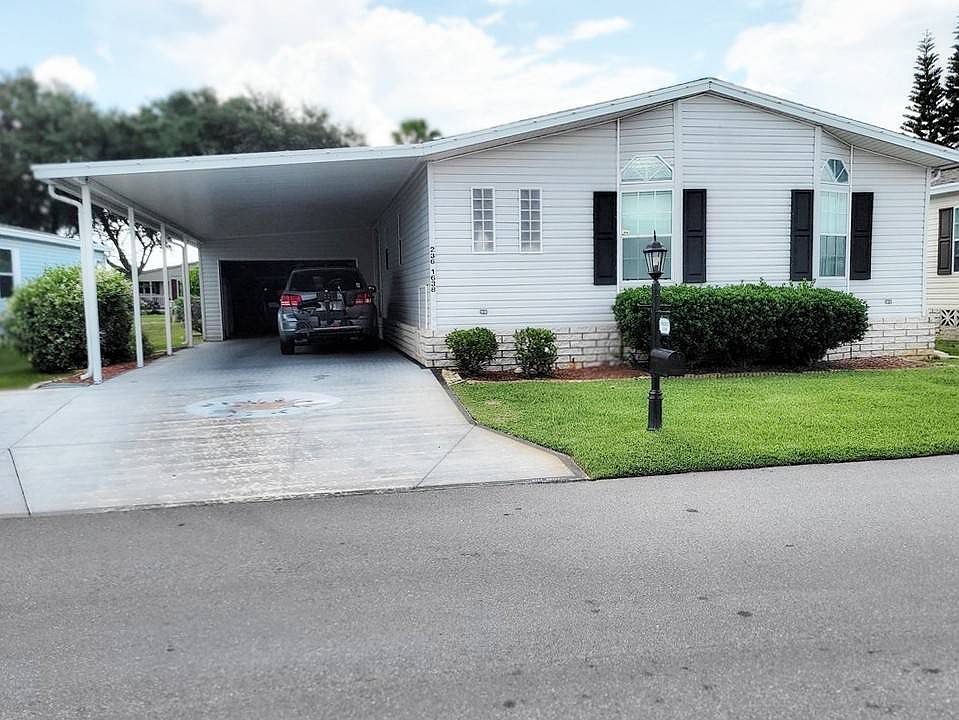Homes in the Four Lakes Golf & Country Club, a 55+ golf community, are on lot leased land. Owning the home, but not the land, you pay a monthly lot rent (Determined at Market Value upon sale) which gives you and your guest access to the amenities of the community........... This 1826 square foot home offers 3 bedrooms, 2 baths and its own laundry room. Kitchen, dining and living room is an open concept space, nice and bright with plenty of room to have family gatherings........... The primary bedroom en suite includes a bath with a garden tub and separate shower as well as a closet the full length of the room...plenty of storage space........... An air conditioned lanai (9 1/2 x 25) with glass windows and a patio directly outside give you your own view of the golf course. An extra freezer is in the shed. A small generator stays with the home........... Four Lakes Golf Club is an affordable, award-winning retirement community. It carries on that tradition with only the finest homes, amenities and service that is second to none. Anyone looking for an active retirement community in the central Florida area need look no further........... Amenities include: 22,000 sq. ft. full-service clubhouse; billiard and game room; library & surround sound theater; 24-hour gated security; exercise room with sauna; fully equipped crafts room w/kilns; putting greens and pro-shop; and access control gate with attendant. Pets under 40 lbs. allowed.