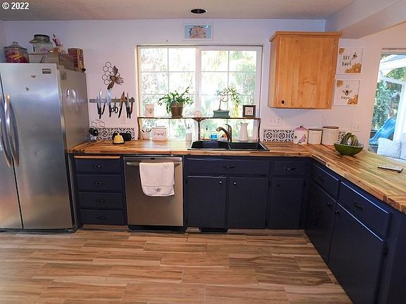 This is the home for you! It sits in a beautiful neighborhood, on a corner lot and out of the flood plain. Vaulted ceilings, hardwood floors and tall windows greet you in the large living room - along with built-in bookcases and seating. Tile floor in the kitchen and dining room. Kitchen boasts of new butcher block counters, stainless appliances and breakfast bar. New fabulous carpet in the bedrooms, new gas furnace in 2021, upgraded blinds, wifi thermostat. RV hookups, garage, expansive decking