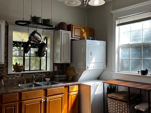Sun-drenched, private apartment ready for immediate move-in! This is a ground-floor unit in a triplex house. Fresh neutral paint and high ceilings make the home feel spacious. The primary bedroom is huge, while the second bedroom is perfect for a roommate or home office. The updated kitchen offers loads of cabinet space and also houses your washer/dryer (included with the rental). Enjoy the cooler evenings relaxing on your back patio with fenced yard - perfect for pets (allowed with deposit). You'll love the convenient location, walkable to schools, parks, and restaurants. Short walk to MARTA bus, and the East Point Rail Station is only a 5 minute drive. Plenty of street parking just out front.